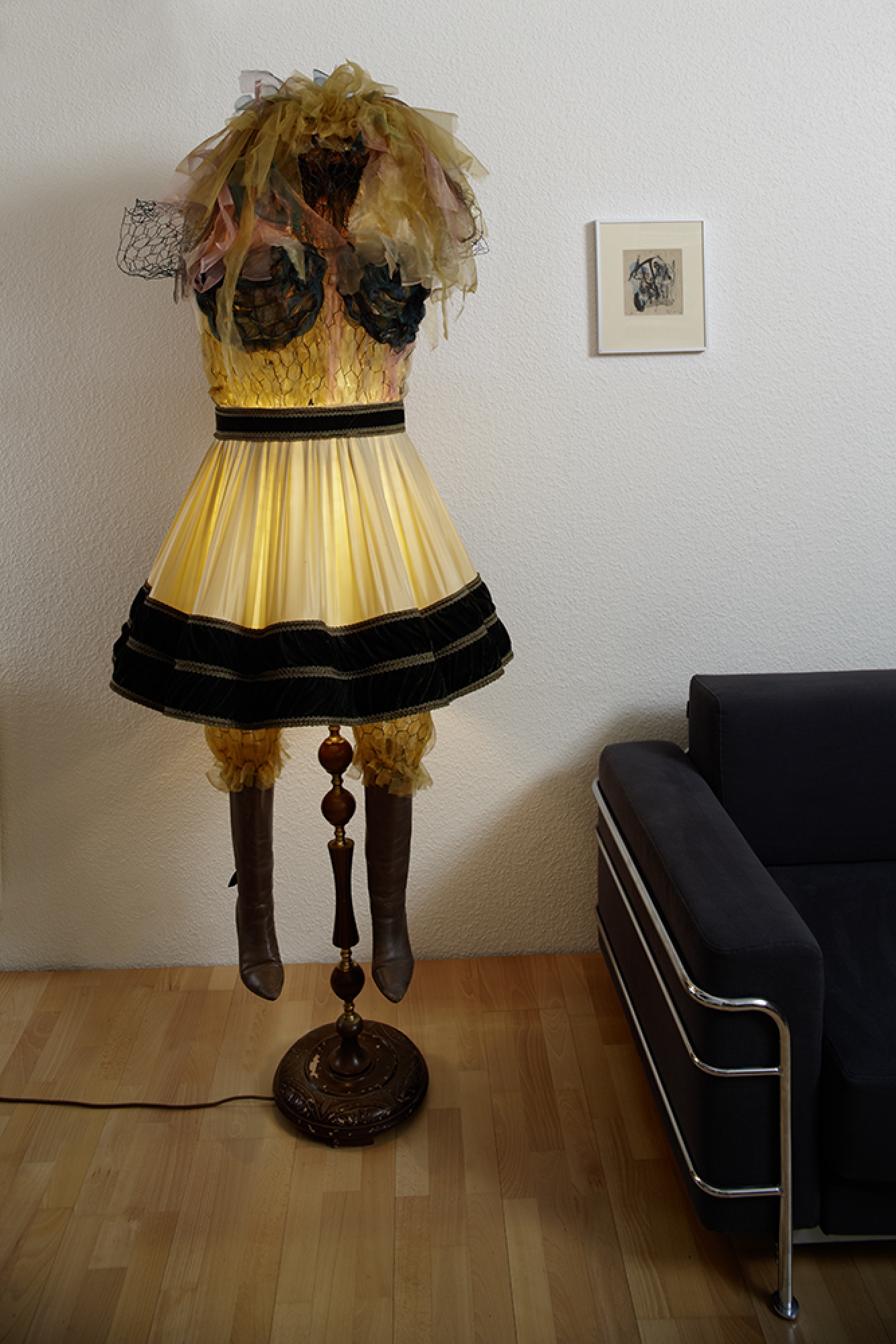 Schon als Kind habe ich in den geschwungenen Lampenschirmen wehende Röcke gesehen, und ich habe mich immer gefragt, warum der Rest des Körpers fehlte. Nun, da ist er - oder besser: sie - wegen der Proportionen in eindruckvoller Größe, ein leuchtendes Symbol für weibliche Macht.
