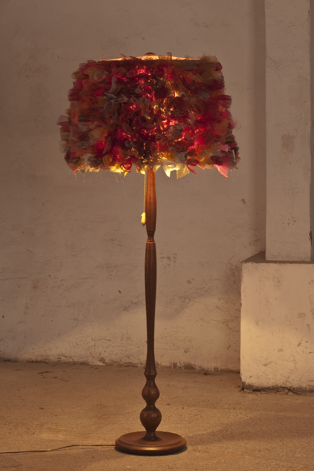 Material: kunstseidene Lampenschirmform, Organza, Holzständer