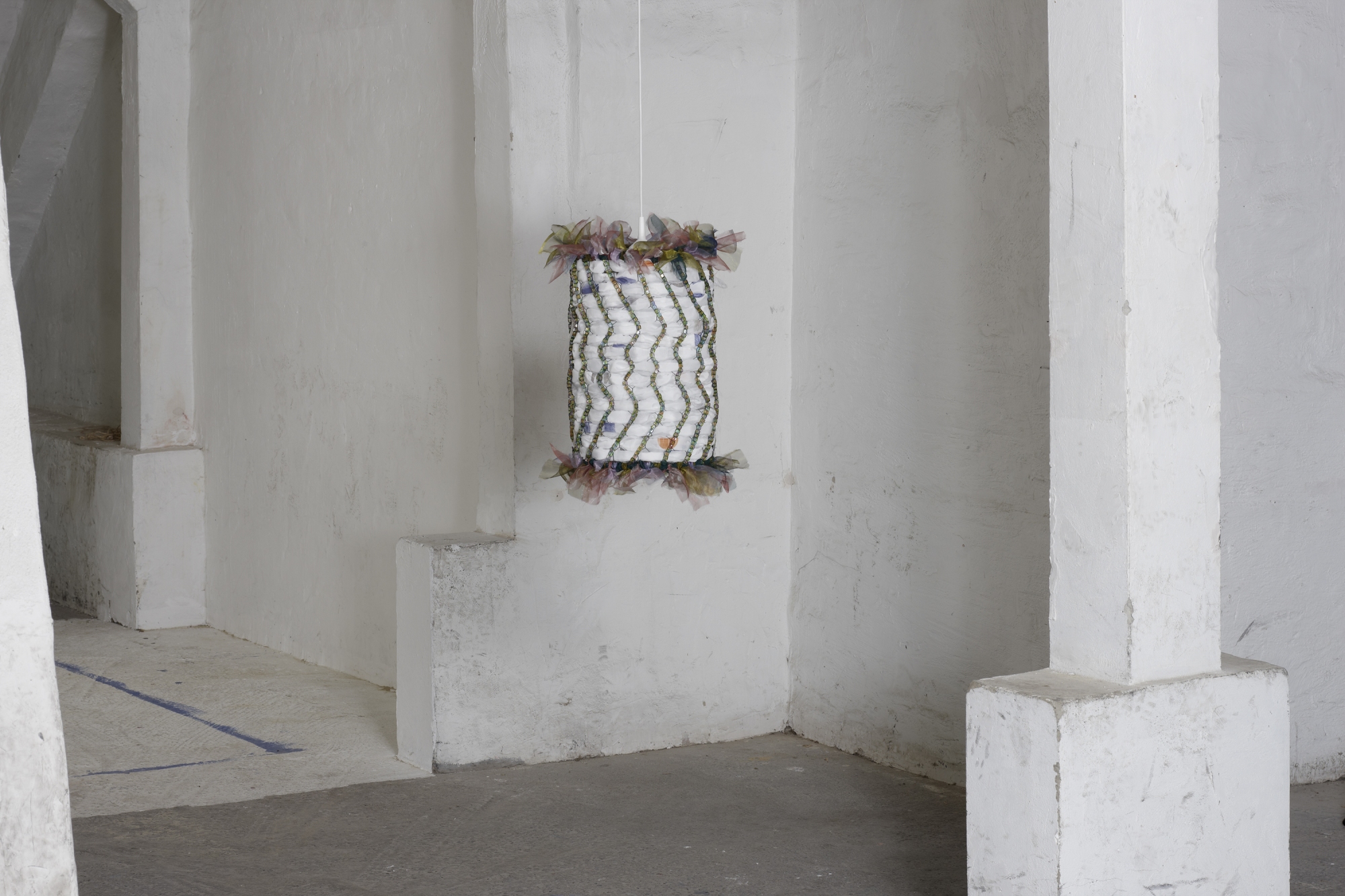 Material: Drahtgeflecht, Organza, Acrylperlen